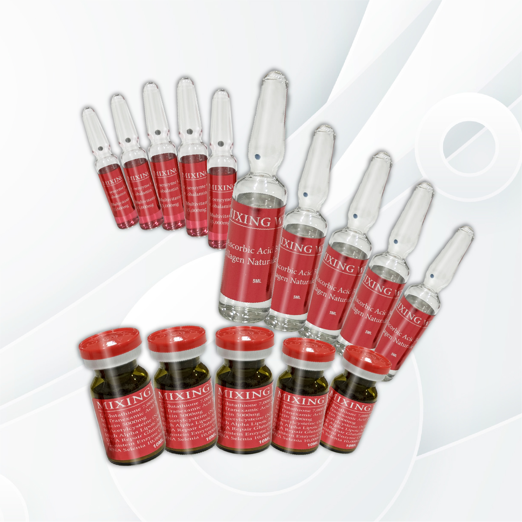 Each box contains 10 sets(10vials + 2ml 10ampoules + 5ml 10ampoules) for a complete and effective skincare regimen.